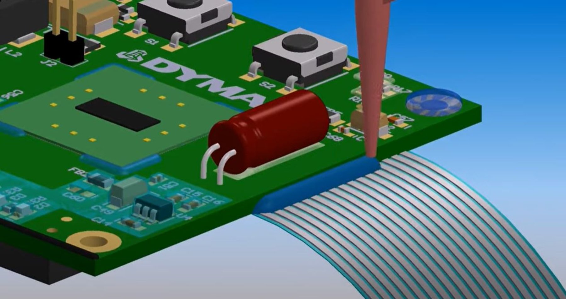 Dymax staking materials contain no nonreactive solvents and cure upon exposure to light. The ability of Dymax materials to cure in seconds enables faster processing, greater output, and lower processing costs. When cured with Dymax light-curing spot lamps, focused-beam lamps, flood lamps, or conveyor systems, they deliver optimum speed and performance for printed circuit boards. Dymax lamps offer the ideal balance of UV and visible light for the fastest, deepest cures.