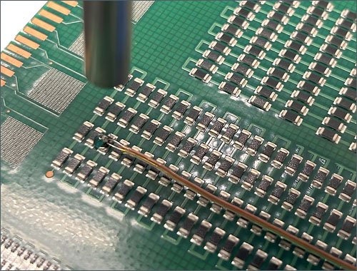 Dymax 9037-F maintained a secure attachment through repeated thermal excursions without cracking, lifting, or degrading. Competing adhesives and tape-based methods required frequent rework or caused components to detach during reflow.